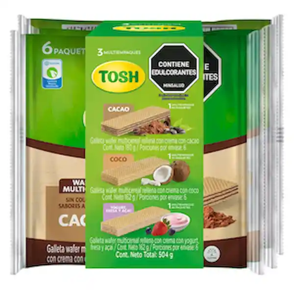 Contiene 18 Unidades. Naturalmente Libres de Grasas Trans y Sin Colorantes ni Saborizantes Artificiales. Son el Snack Perfecto Para Cuando Quieres Algo Delicioso Entre Comidas o en Cualquier Momento Del Día. Haz Una Pausa Con Las Wafer Cacao Tosh y Descubre la Manera de Cuidarte Que te Hará Feliz.