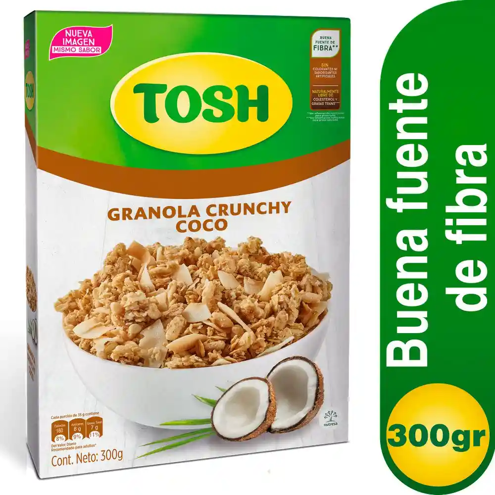 Cereal con trozos de coco rallado y hojuelas de avena integral, es buena fuente de fibra y es ideal para darle sabor a tus mañanas, se puede disfrutar con cualquier tipo de leche o con tu yogur favorito.