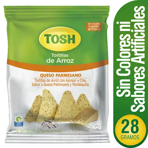 Arroz Parmesano Ficha Técnica: Marca: Tosh Modelo: Pasabocas Saludables Tipo de Producto: Pasabocas Snacks de arroz Cantidad: 28 gramos Unidades por paquete: 6 País de Producción: Colombia Registro Invima: NSA-0012203-2022 Presentación del Producto: Paquete Profundidad ITEM: 16,6 cm Ancho ITEM: 3,3 cm Altura ITEM 13 cm Características del Pasabocas TOSH Arroz Parmesano x 28 gramos Pasabocas Snacks saludables de arroz.
