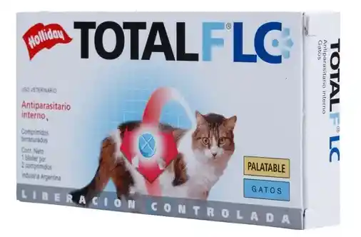 Antiparasitario Interno Total Flc Gatos ANTIPARASITARIO interno oral de liberación controlada en comprimidos birranurados palatables. Etapa Adulto Composición y/o Material Cada comprimido contiene: Fenbendazol 200 mg. Pirantel base (como pamoato) 80 mg. Praziquantel 20 mg. Excipientes c.s. Recomendación de uso Prevención y tratamiento de cestodes, nematodes. Cestodes: Dipylidium caninum, Taenia spp. Nematodes: Toxocara cati, Toxascarias leonina, Ancylostoma spp. Beneficios 1. Amplio espectro de protección, contra parásitos planos, redondos y protozoos. 2. Tabletas palatables. 3. Sistema de liberación controlada que garantiza mayor efectividad del producto. Garantía del vendedor: 30 días