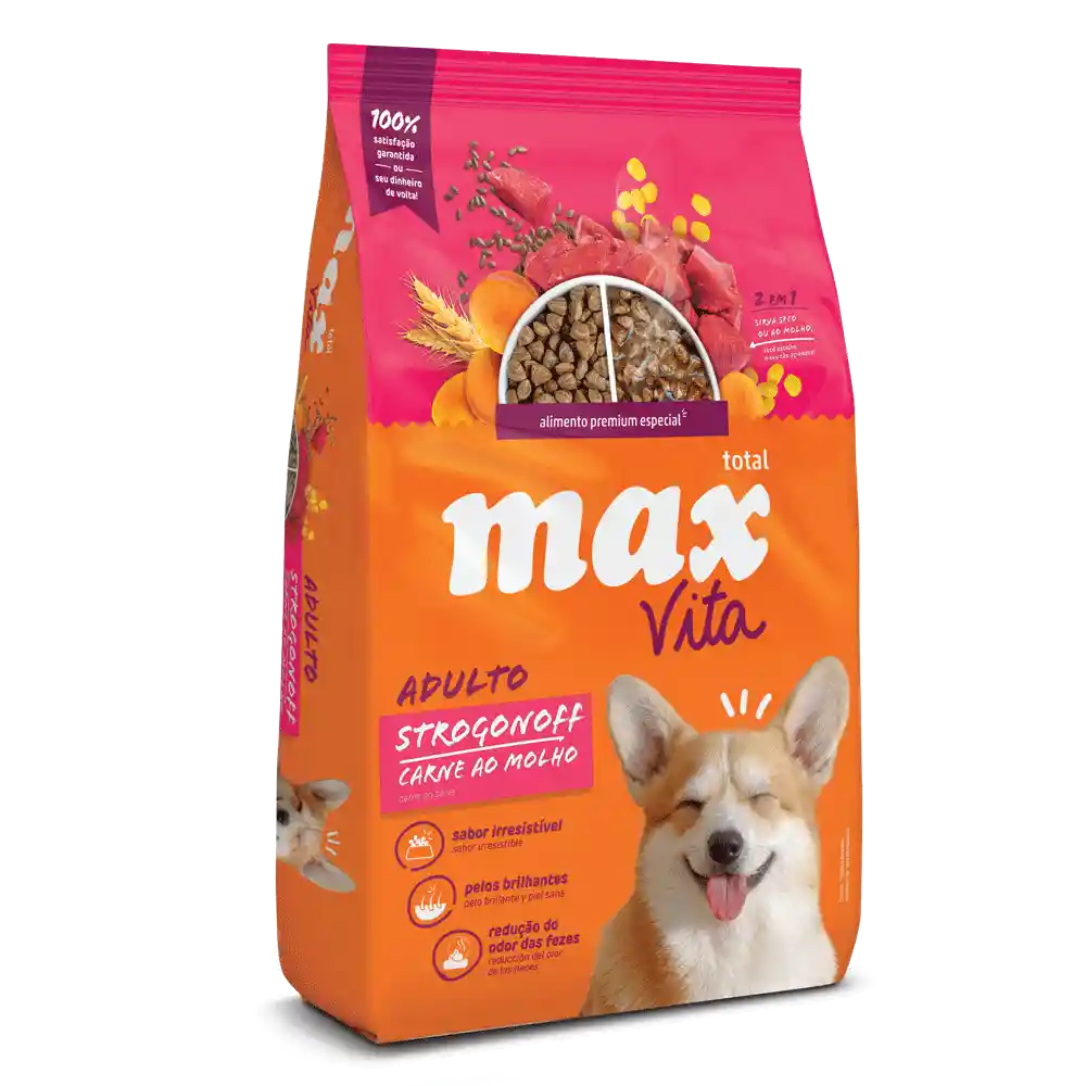 Con Total Max Vita tu peludo estará siempre activo para disfrutar cada momento. Brinda prebiótico y extracto de yuca que reducen el olor de las heces. Ideal para perros adultos de razas pequeñas.