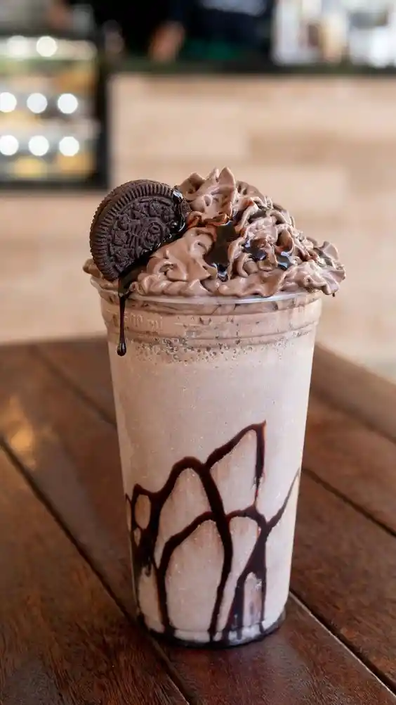 DELICHIOSO FRAPUCINO CON DECORACION DE CHOCOLATE ADICIONAL DE OREO