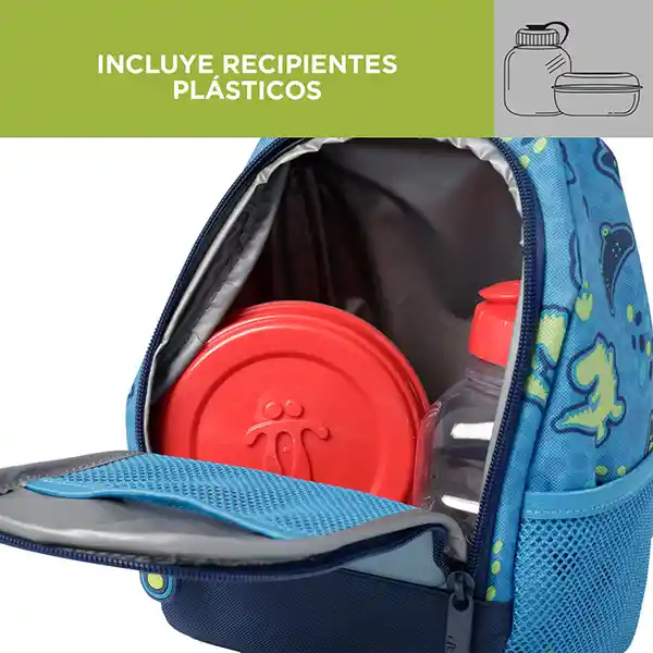 Lleva Tus Snacks Favoritos y no Olvides Alimentarte Bien. Esta Lonchera Morral Tiene un Compartimento Principal Con Cierre de Doble Cremallera el Frente es Termosellado Tiene Manija en Reata Bolsillos Laterales Porta Botellas Elásticos Para Asegurarlas y Correas de Ajuste. Cuenta Con Espacio Especial Para Marcarla Con tu Nombre. El Material Interno es en Pvc Facilitando su Limpieza. *Incluye Recipientes Plásticos Libres de Bpa Para Alimentos y Bebidas Aplica Solo Para Colombia.