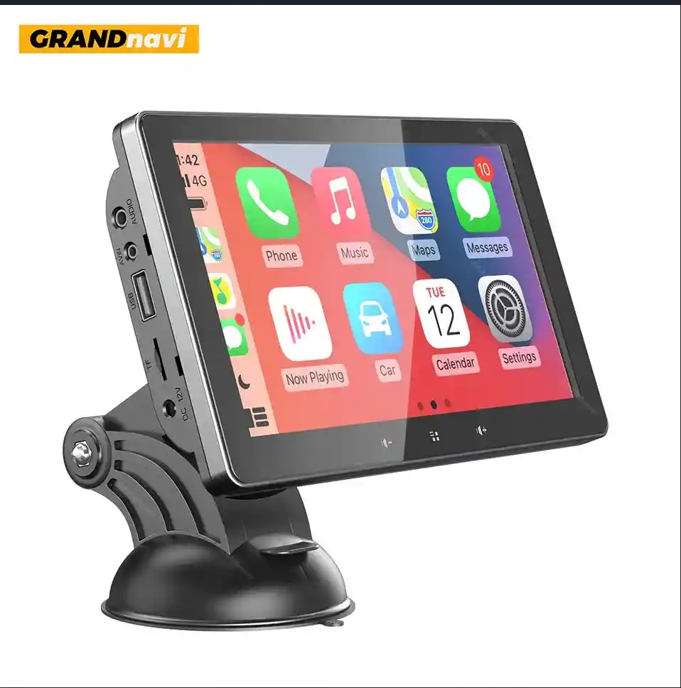 Plug and Play, se adapta a todos los vehículos: el estéreo de coche de pantalla táctil Hinine_Auto está equipado con un soporte de ventosa resistente, que se puede instalar en superficies lisas como parabrisas, salpicaderos, en cualquier lugar. No es necesario desmontar la consola del coche, mantener la radio original del coche y coexistir perfectamente. Nota: este dispositivo no se puede controlar con un volante o perilla. • Aplicación inalámbrica y con cable Apple CarPlay/Android Auto: una forma más inteligente, segura y divertida de usar iPhone/Android Auto en tu coche. El control de voz te proporciona una manera más fácil de hacer llamadas, navegar por Google Maps, Waze, reproducir música y recibir mensajes de texto. • Función de rotación de 360°/conexión de espejo HD: el soporte de montaje portátil de doble DIN para monitor Apple Carplay cubre todos los ángulos, soporta rotación de 360 grados, Plug and Play. Compatible con la función de duplicación Android/iOS, puedes conectar tu teléfono al sistema de audio del coche a través del cable de datos original para conectar y sincronizar fácilmente contenido (video, GPS, etc.). También puedes reflejar películas para que los niños vean en viajes largos. • ¿Cómo obtener el sonido del estéreo de tu coche? El estéreo Carplay tiene un altavoz integrado, pero si quieres un sonido más fuerte, puedes transmitirlo al altavoz del coche: Con el transmisor de radio FM, puedes conectar entre el dispositivo y la radio del coche. Conecta una radio FM para hacer lo mismo en el canal (por favor, evita utilizar un canal ocupado por una estación FM). Si hay uno en el coche, conéctalo a la interfaz auxiliar original del coche a través del cable AUX. • Equipo profesional GrandNavi: si tienes alguna pregunta con el producto, no dudes en ponerte en contacto con nosotros para que nuestro equipo profesional de tec responderá en 24 horas.