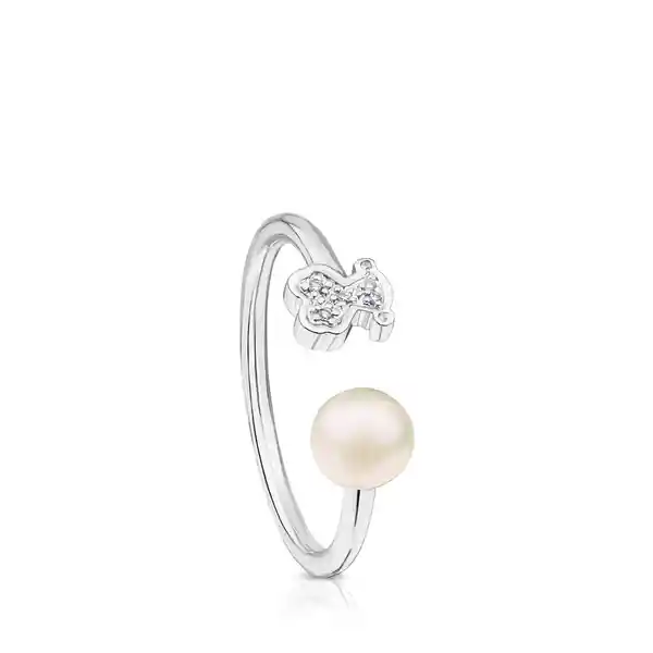 Anillo Puppies de Oro Blanco Con Diamantes y Perla