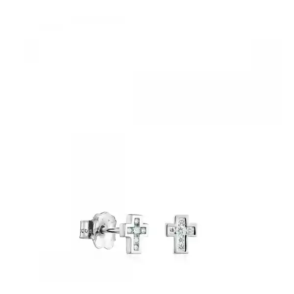 Contiene 2 Unidades. Aretes Les Classiques Cruz de Oro Blanco y Diamantes