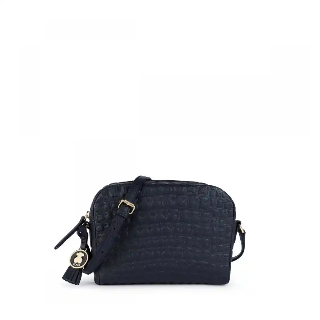 Bolso bandolera TOUS Sherton de piel grabada con oso simulando efecto cocodrilo en color azul marino. Asa bandolera ajustable. Cierre con cremallera. Dos bolsillos interiores, uno de los cuáles con cremallera. Medidas: 14x19x5 cm.