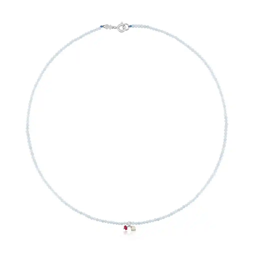 Collar TOUS Camille de plata de primera ley y calcedonias de 0,2 cm con rubí y perla.
