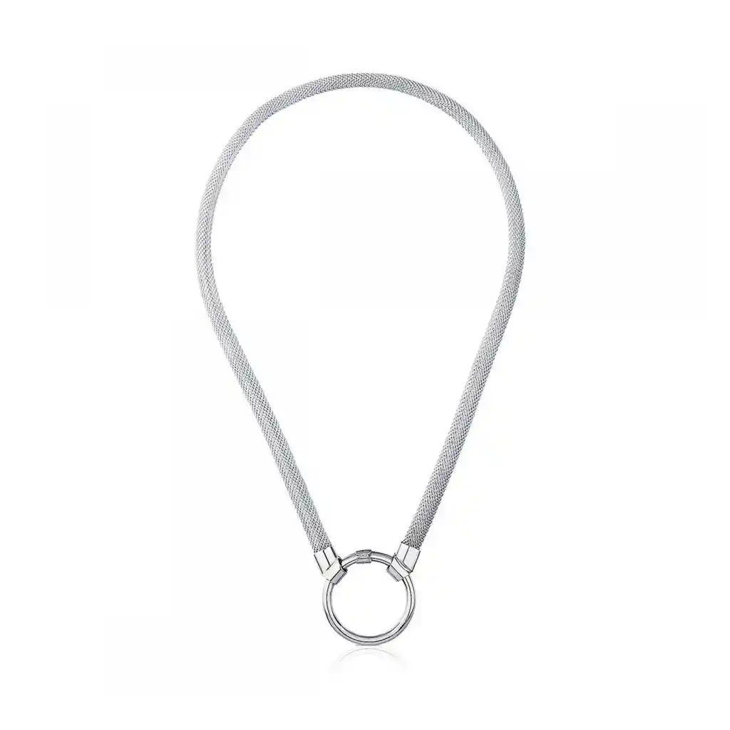 Collar TOUS Hold de plata de primera ley con collar Mesh. Personalízalo con colgantes, tinys o anillas. Anilla: 2,8 cm. Largo: 42 cm.