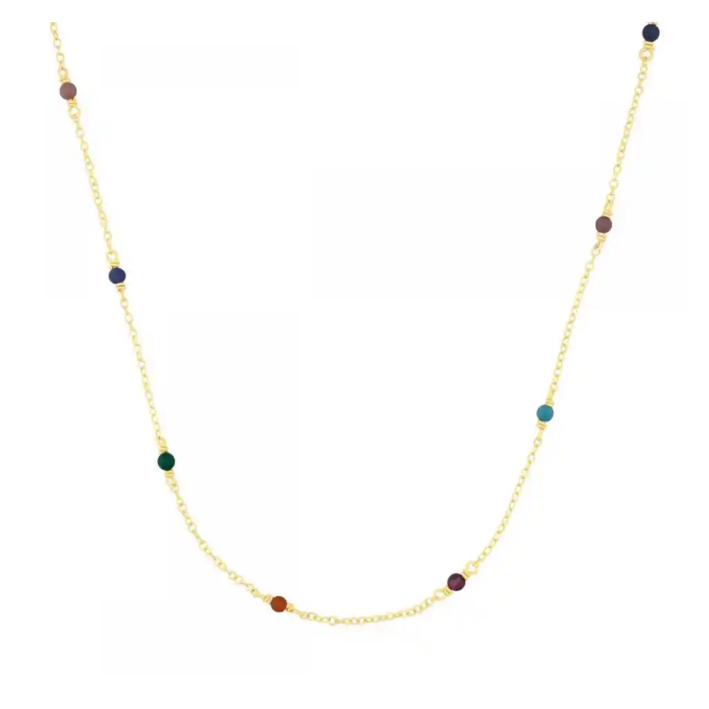 Collar TOUS Super Power de plata vermeil con rodonitas, sodalitas, cuarcita verde, cuarcita naranja, granate y magnesitas. Largo: 40 cm. Plata de primera ley recubierta de oro de 18kt con un espesor de 3 a 5 micras