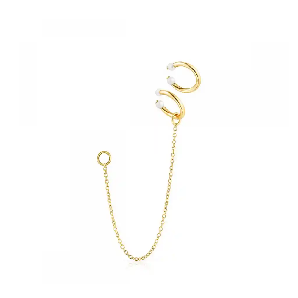 Pack de earcuff TOUS Batala de plata vermeil con perla de 0,2 cm. Largo cadena: 8,5 cm. Plata de primera ley recubierta de oro de 18kt con un espesor de 3 a 5 micras y sin ningún otro metal entre ambos. (No incluye el pendiente de cierre presión)