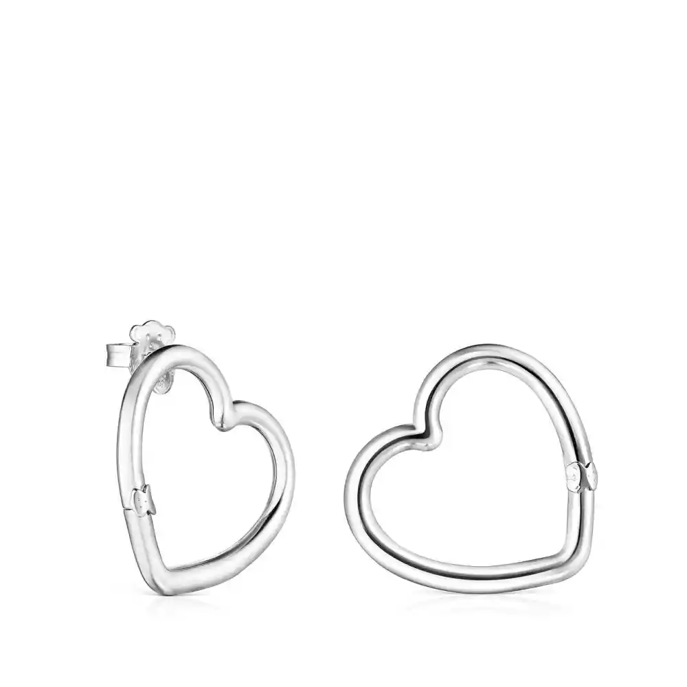 Pendientes medianos TOUS Hold corazón de plata de primera ley. Tamaño de los pendientes: 2,8 cm. Cierre presión.