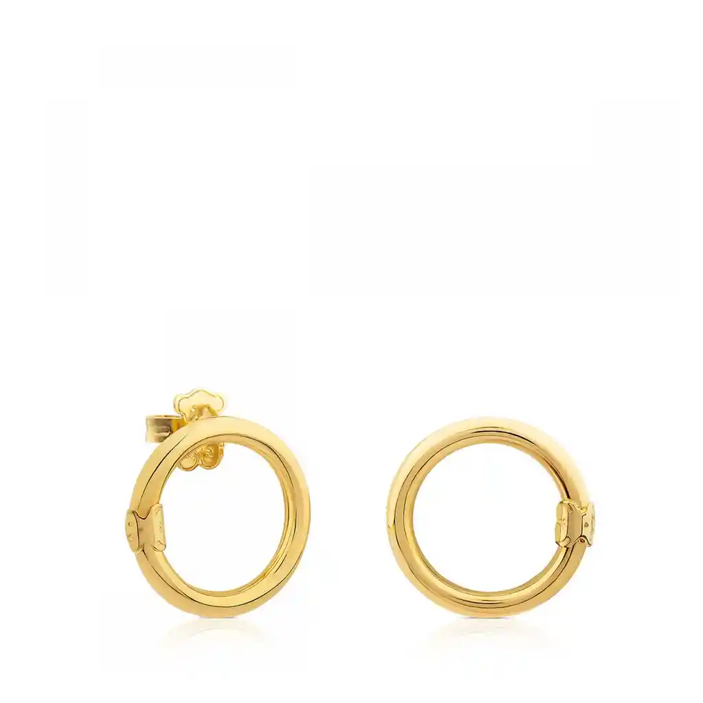 Pendientes medianos TOUS Hold de plata vermeil. Cierre presión. Personalízalo con colgantes, tinys o anillas. Anilla: 2 cm. Plata de primera ley recubierta de oro de 18kt con un espesor de 3 a 5 micras y sin ningún otro metal entre ambos.