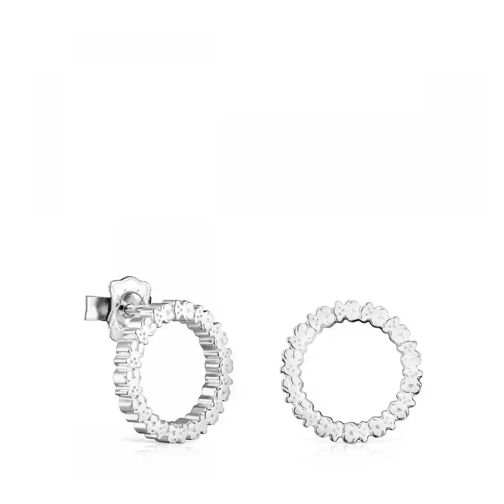Pendientes medianos TOUS Straight disco de plata de primera ley. Cierre presión. Motivo: 1,5 cm.