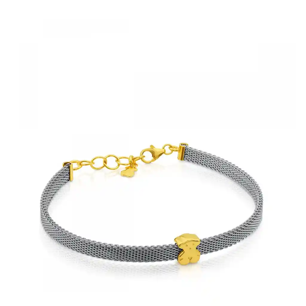 Pulsera TOUS Icon Mesh de acero y oro amarillo de 18kt. Ancho: 0,4 cm. Motivo: 0,6 cm. Largo: 17,5 cm.