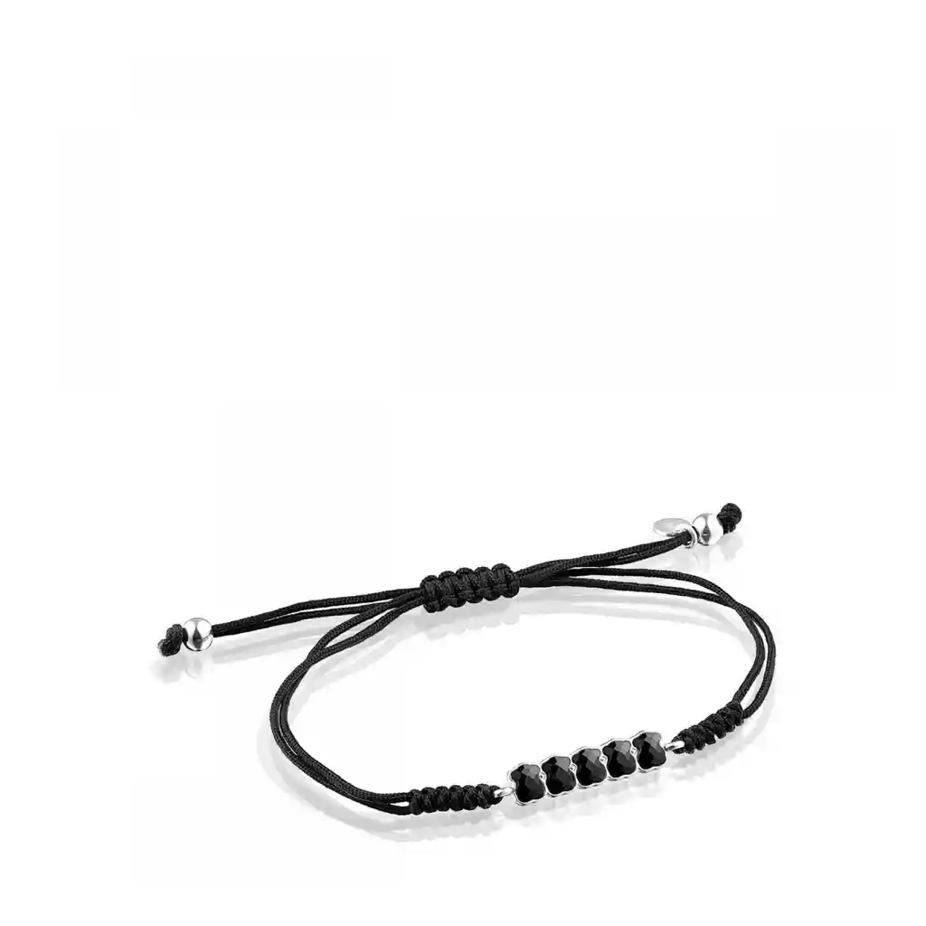 Pulsera TOUS Mini Onix de plata de primera ley con ónix y cordón de color negro. Motivo: 2 cm. Largo: 17,5 cm.