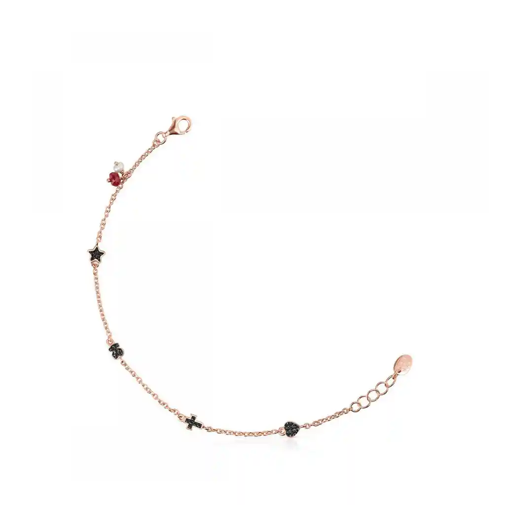 Pulsera TOUS Motif de plata vermeil rosa con espinelas, rubí y perla. Tamaño de los motivos: 0,44 - 0,58 cm. Largo: 17,5 cm. Plata de primera ley recubierta de oro de 18kt con un espesor de 3 a 5 micras y sin ningún otro metal entre ambos.