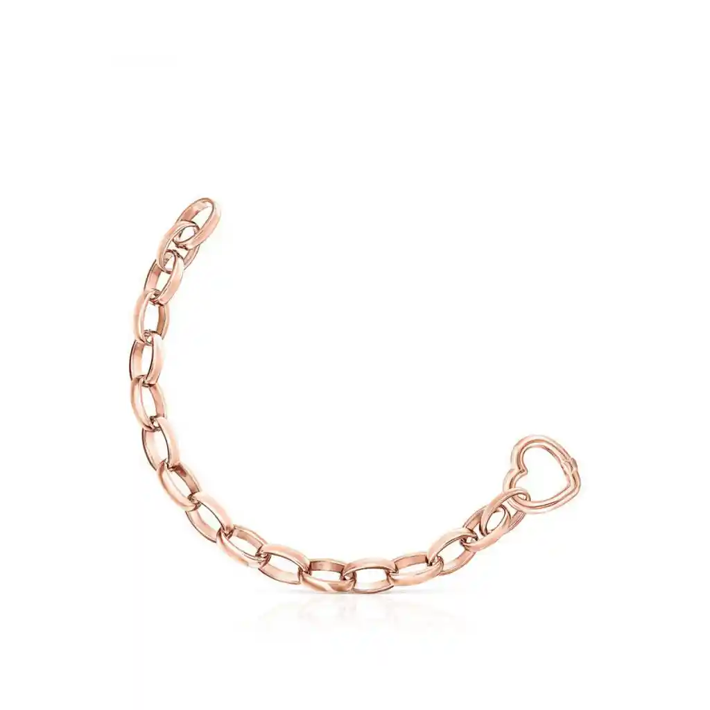 Set TOUS Hold de plata vermeil rosa formado por pulsera de quince anillas ovales .Plata de primera ley recubierta de oro de 18kt Los sets HOLD combinan collares, pulseras y pendientes con gargantillas y brazaletes de cuero.