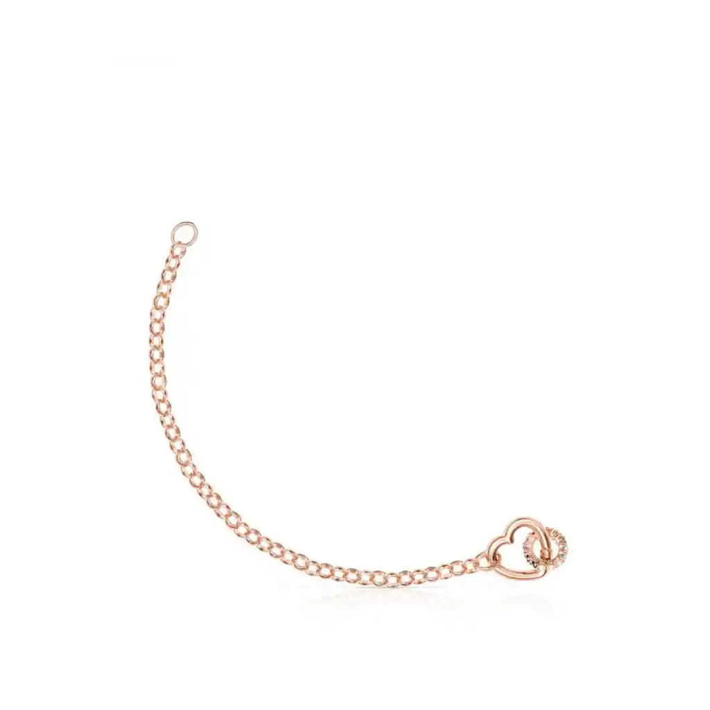 Set TOUS Hold de plata vermeil rosa formado por pulsera de 16,5 cm, colgante Shield con turquesa, cromodiópsido, zafiro naranja, rubí, amatista, espinela y perla, anilla corazón de 1,5 cm + pulsera de cuero de color marrón de 15,5 cm.