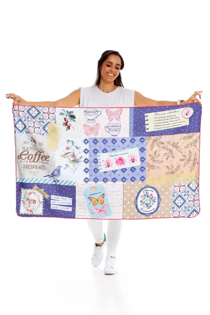 Toalla de microfibra ideal para viajar . estampada en la colección Aroma a Colombia . Alta absorción y secado rápido. tiene un elástico que le permite ser empacada de manera compacta en forma de rollo no ocupa mucho espacio.Medidas: 64 cm ancho x 1.16 mt alto