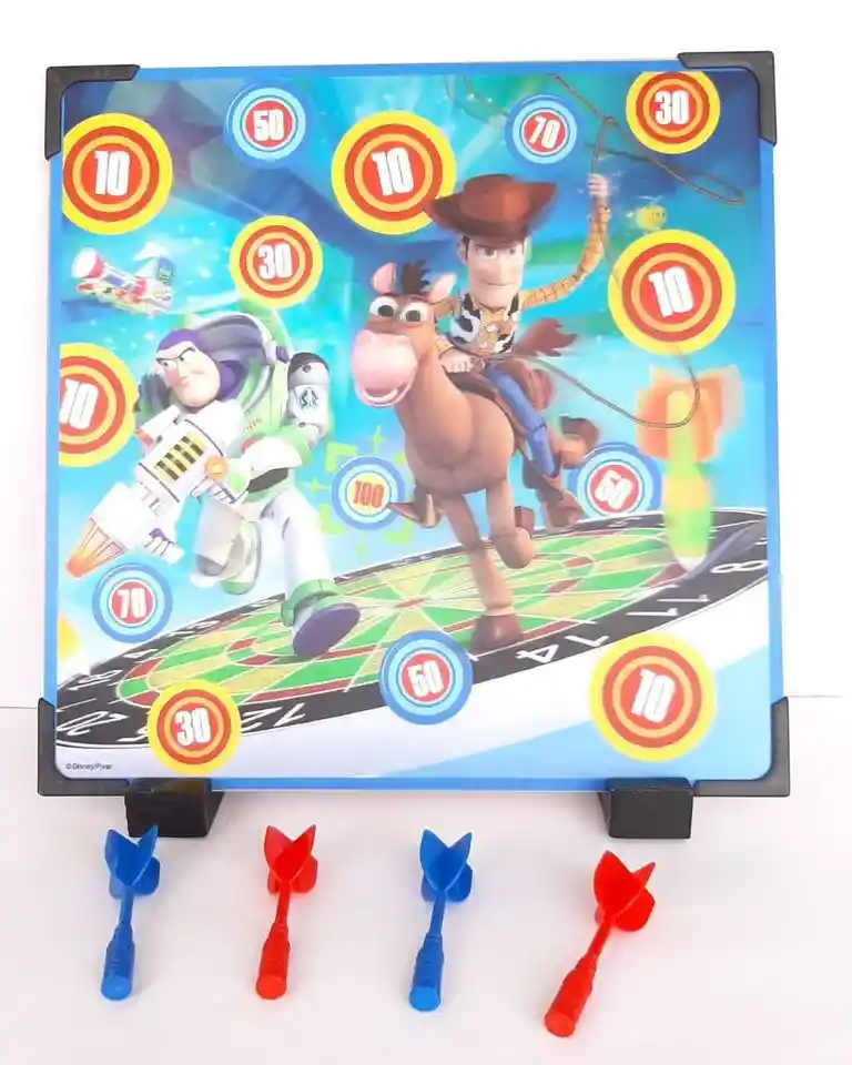 Juego Dardos 3d Tiro Al Blanco Toy Story Diviértete con este lindo juego de puntería y precisión. Hermoso tablero en 3D de Toy Story y sus amigos, juego, puntería y mucha diversión Dardos 3D Tiro al Blanco de Toys Story es un divertido juego en el cual tendrás que lanzar los dardos al tablero con efecto 3D, el cual tiene varios números para acumular puntajes desde 10 hasta 70 puntos. Modelo: 10341. Tipo: Juegos de mesa. Género: Unisex. Material: Plástico. Color: Multicolor. Edad mínima recomendada: 8 años. Dimensiones del producto: 28.5 cm x 6.3 cm x 28 cm. Peso del producto: 0.244 kg. INCLUYE Juego Dardos 3D Tiro Al Blanco Toy Story.