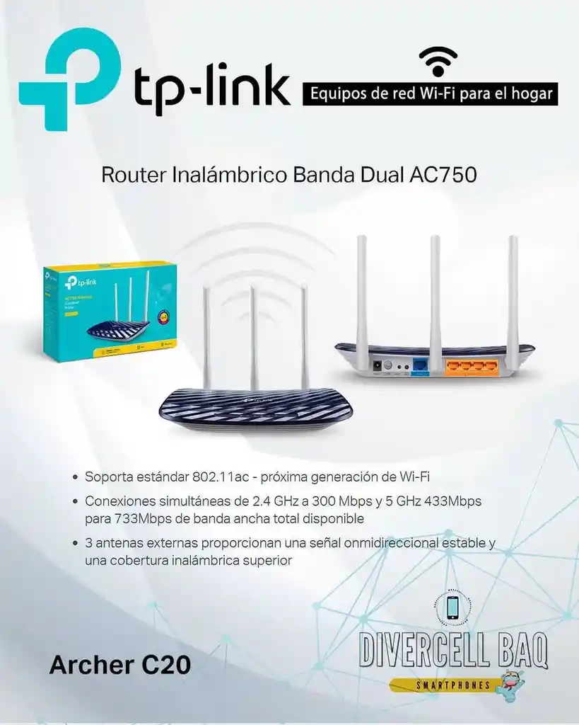 CARACTERÍSTICAS DE HARDWARE Interface 4 puertos LAN 10-100Mbps 1 puerto WAN 10-100Mbps Botón Botón WPS-Reset Switch Inalámbrico Encendido - Apagado Botón de Encendido - Apagado Fuente de Alimentación Externa 12VDC -1A Dimensiones (W X D X H) 9.1 x 5.7 x 1.4 pulgadas. (230 x 144 x 35mm) Antenas 2 × 2.4GHz Antennas 1 × 5GHz Antenna CARACTERÍSTICAS INALÁMBRICAS Estándares Inalámbricos IEEE 802.11ac-n-a 5GHz IEEE 802.11b-gn 2.4GHz Frecuencia 2.4GHz and 5GHz Tasa de Señal 5GHz: Hasta 433Mbps 2.4GHz:Hasta 300Mbps Sensibilidad de Recepción 5GHz 11a 6Mbps: -91dBm, 11a 54Mbps: -74dBm 11ac HT20: -66dBm, 11ac HT40: -64dBm, 11ac HT80: -61dBm, 11n HT20: -71dBm, 11n HT40: -69dBm 2.4GHz 11g 54M: -76dBm 11n HT20: -74dBm, 11n HT40: -71dBm Funciones Inalámbricas Habilitar y Deshabilitar Radio Inalámbrico,Puente WDS, WMM, Estadísticas Inalámbricas Seguridad Inalámbrica Encriptación 64/128-bit WEP,WPA - WPA2,WPA-PSK-WPA2-PSK Potencia de Transmisión CE: <20dBm(2.4GHz) <23dBm(5GHz) FCC: <30dBm CARACTERÍSTICAS DE SOFTWARE Calidad de servicio WMM, Control de Ancho de Banda Administración Control de Acceso Administración Local Administración Remota Port Forwarding Servidor Virtual, Port Triggering, UPnP, DMZ Dynamic DNS DynDns, Comexe, NO-IP VPN Pass-Through PPTP, L2TP, IPSec Control de Acceso Control Parental,Control de Administración Local, Lista de Host, Acceso a Agenda, Reglas de Administración Seguridad de cortafuegos DoS, SPI Firewall IP Address Filtering-MAC Address Filtering-Domain Filtering IP and MAC Address Binding Protocolos Soporta IPv4 - IPv6 USB Compartido Soporta Samba(Storage)- SErvidor FTP -Servidor de Medios-Servidor de Impresión Red de invitados red de invitado 2.4GHz × 1 red de invitado 5GHz × 1 OTROS Certificacion CE, FCC, RoHS Contenido del paquete Router Inalámbrico Banda Dual AC750 Archer C20 2 Antenas Fijas Fuente de Alimentación CD de Instalación Cable Ethernet Guía de Instalación Rápida Dimensiones de la Caja (W X D X H) 11.2 x 8.8 x 3.6 pulgadas. (285x223x91mm) Requisitos del Sistema sistema operativo basado en Windows 10-8.1-8-7-Vista-XP, Mac OS o Linux