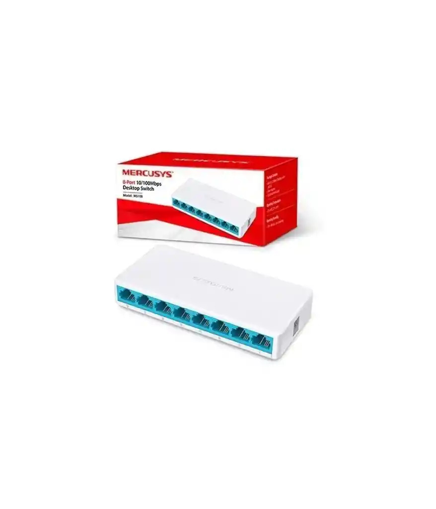 Comparte archivos, impresoras y conexión a Internet con múltiples equipos simultáneamente.Gracias a Mercusys MS108, podrás conectar diferentes dispositivos a través de sus puertos y optimizar su rendimiento, velocidad y seguridad. Puertos RJ-45 El conector RJ-45 termina en el cable par trenzado sin blindaje. Es utilizado en redes Ethernet que se conoce comúnmente como el cable Ethernet. A su vez, este cable contiene ocho alambres, lo que hace que los ocho pines del conector RJ-45 sean adecuados para su uso con este tipo de cables. Hecho a tu medida Su tecnología permite guardar los datos en buffer antes de enviarlos al puerto de salida. Esto garantiza un correcto funcionamiento. Escalabilidad y funcionalidad a tu alcance Este switch de red cuenta con una capacidad de conmutación de 1.6 Gbps. Este permite transferir datos entre los diferentes dispositivos que forman la LAN, o red local, de una manera eficiente y así mejora el ritmo del servidor de red y sus conexiones troncales.