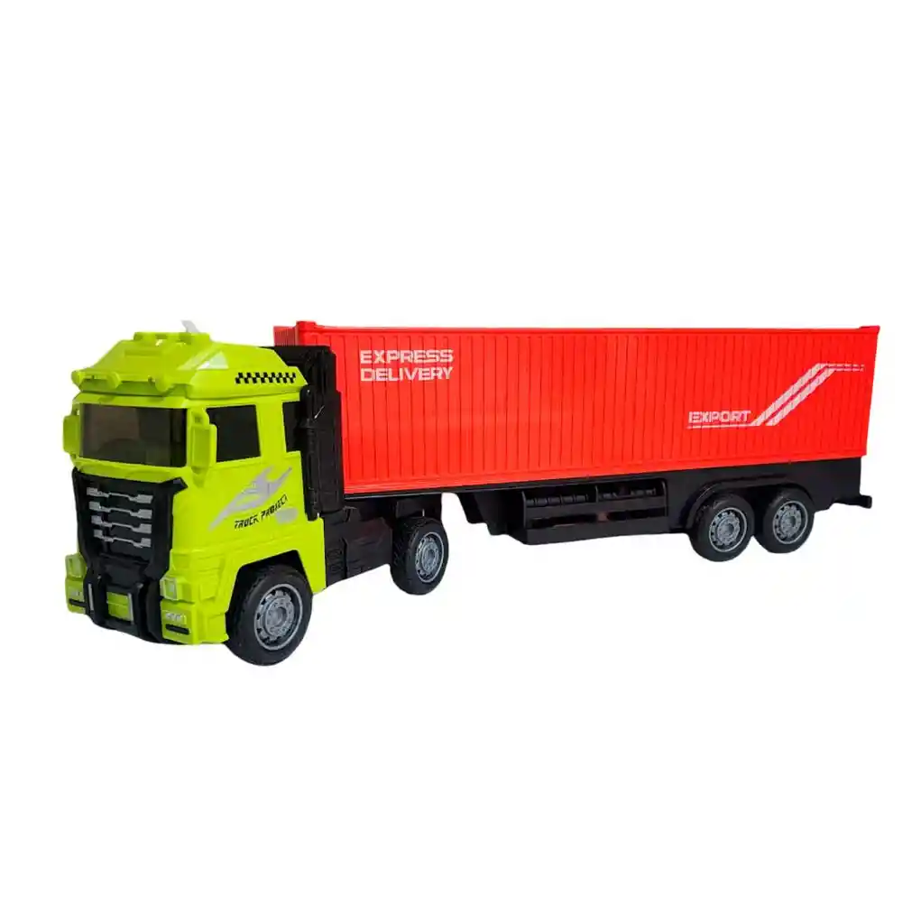 Camión de juguete tipo tráiler con diseño moderno y colores llamativos, ideal para el entretenimiento de niñas y niños a partir de 3 años. Cuenta con cabina verde neón y un gran contenedor rojo con inscripciones de “Express Delivery” y “Export”, que simula el transporte de carga real, fomentando el juego de roles y la imaginación. Fabricado en materiales resistentes, incluye luces y sonidos que hacen la experiencia más realista y divertida, convirtiéndolo en una excelente opción para horas de juego dinámico y educativo. Ficha Técnica: Dimensiones de la tracto mula : 48 cm x 15 cm x 9 cm Material: Plástico ABS Edad Apta : + 3 años Referencia: 668-53C Certificado de conformidad: CS-LCO-13233 Términos de Garantía: Para defectos de fábrica o retractos: Por favor revise el producto apenas lo reciba y antes de usarlo. No aplican ley de retracto o defectos de fábrica luego de usar el producto. Se manejan máximo 5 días para reportar defectos de fábrica (por ejemplo, producto funciona mal, piezas faltantes, rotas, etc). Para hacer efectiva la devolución el producto debe devolverse con el empaque original, el cual debe estar en buen estado, incluir todos los documentos y las partes completas y sin daños.