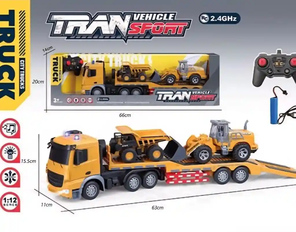 Potencia, realismo y control total. Esta tractomula de construcción a control remoto incluye una volqueta y una retroexcavadora con rodillo por inercia, ideal para recrear escenarios de obra y transporte pesado. Su tamaño de 63 cm la convierte en un camión grande, llamativo y perfecto para niños que aman los vehículos industriales ✅ Medidas del vehículo: 63 cm de largo × 12.5 cm de alto × 11 cm de ancho ✅ 100% recargable, sin necesidad de pilas desechables ✅ Control remoto 2.4 GHz: mayor estabilidad, mejor alcance y cero interferencias con botón de modo automático ✅ Incluye Volqueta y retroexcavadora (roller) con rodillo de inercia, lista para cargar y descargar ✅ Sonidos integrados, simulando un camión real ✅ Funciones: avance, retroceso, giro izquierda/derecha, stop ✅ Construcción robusta ideal para juego prolongado ✅ Control remoto 2.4 GHz: mejor alcance, sin interferencias y maniobrabilidad precisa ✅ Incluye 2 máquinas de construcción: volqueta y retroexcavadora ✅ Plataforma trasera abatible, diseñada para subir y bajar la maquinaria fácilmente ✅ Diseño de simulación realista: colores, ruedas, cabinas y estructura tipo obra ✅ Luces y detalles auténticos en el camión ✅ Materiales resistentes aptos para uso infantil ✅ Ideal para niños desde 3 años