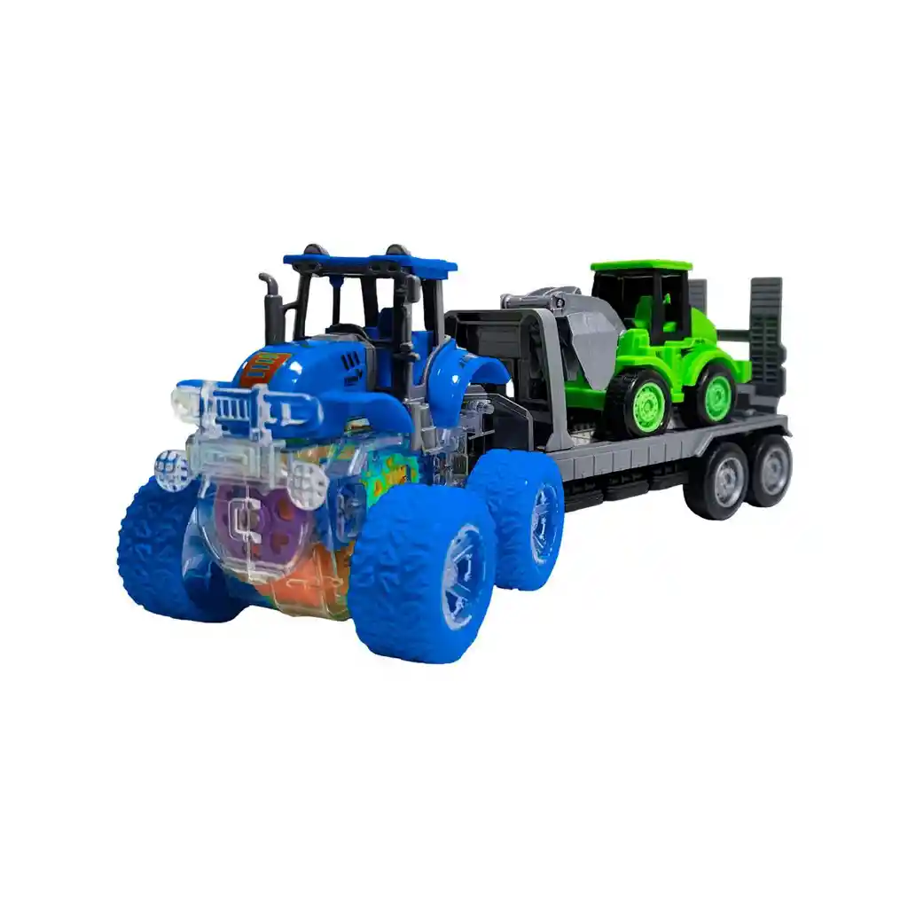 ¡Manos a la obra con este espectacular set de transporte de construcción! Un imponente tractor amarillo lidera el equipo, luciendo un increíble chasis transparente que revela un show de engranajes de colores y luces en pleno funcionamiento mientras se mueve. Engancha su resistente remolque para llevar la excavadora verde directamente a la zona de trabajo. Una vez encendido, este poderoso tractor avanza por sí solo, arrastrando la maquinaria pesada y mostrando su fascinante mecanismo interno en acción. Es el juguete 3 en 1 perfecto para el pequeño constructor en casa, combinando la fuerza de los vehículos de trabajo con un diseño dinámico que inspira horas de juego creativo y grandes proyectos. Ficha Técnica: Material: Plástico ABS Dimensiones Del Vehículo : 27 cm x 10 cm x 8 cm Apto para: + 3 Años Referencia: YM-1112T1 Certificado de conformidad: CS-LCO-13233-2021S2/432 ** _Para defectos de fábrica o retractos: \_Por favor revise el producto apenas lo reciba y antes de usarlo. No aplican ley de retracto o defectos de fábrica luego de usar el producto. Se manejan máximo 5 días para reportar defectos de fábrica (por ejemplo, producto funciona mal, piezas faltantes, rotas, etc). Para hacer efectiva la devolución el producto debe devolverse con el empaque original, el cual debe estar en buen estado, incluir todos los documentos y las partes completas y sin daños.
