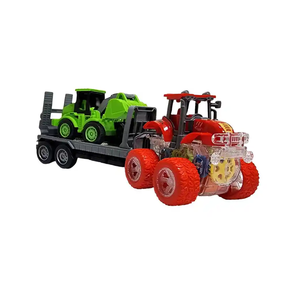 ¡Manos a la obra con este espectacular set de transporte de construcción! Un imponente tractor amarillo lidera el equipo, luciendo un increíble chasis transparente que revela un show de engranajes de colores y luces en pleno funcionamiento mientras se mueve. Engancha su resistente remolque para llevar la excavadora verde directamente a la zona de trabajo. Una vez encendido, este poderoso tractor avanza por sí solo, arrastrando la maquinaria pesada y mostrando su fascinante mecanismo interno en acción. Es el juguete 3 en 1 perfecto para el pequeño constructor en casa, combinando la fuerza de los vehículos de trabajo con un diseño dinámico que inspira horas de juego creativo y grandes proyectos. Ficha Técnica: Material: Plástico ABS Dimensiones Del Vehículo : 27 cm x 10 cm x 8 cm Apto para: + 3 Años Referencia: YM-1112T1 Certificado de conformidad: CS-LCO-13233-2021S2/432 ** _Para defectos de fábrica o retractos: \_Por favor revise el producto apenas lo reciba y antes de usarlo. No aplican ley de retracto o defectos de fábrica luego de usar el producto. Se manejan máximo 5 días para reportar defectos de fábrica (por ejemplo, producto funciona mal, piezas faltantes, rotas, etc). Para hacer efectiva la devolución el producto debe devolverse con el empaque original, el cual debe estar en buen estado, incluir todos los documentos y las partes completas y sin daños.