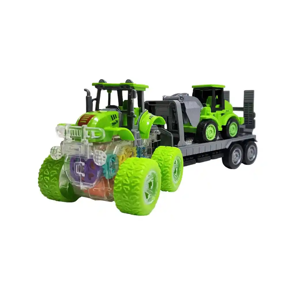 ¡Manos a la obra con este espectacular set de transporte de construcción! Un imponente tractor amarillo lidera el equipo, luciendo un increíble chasis transparente que revela un show de engranajes de colores y luces en pleno funcionamiento mientras se mueve. Engancha su resistente remolque para llevar la excavadora verde directamente a la zona de trabajo. Una vez encendido, este poderoso tractor avanza por sí solo, arrastrando la maquinaria pesada y mostrando su fascinante mecanismo interno en acción. Es el juguete 3 en 1 perfecto para el pequeño constructor en casa, combinando la fuerza de los vehículos de trabajo con un diseño dinámico que inspira horas de juego creativo y grandes proyectos. Ficha Técnica: Material: Plástico ABS Dimensiones Del Vehículo : 27 cm x 10 cm x 8 cm Apto para: + 3 Años Referencia: YM-1112T1 Certificado de conformidad: CS-LCO-13233-2021S2/432 ** _Para defectos de fábrica o retractos: \_Por favor revise el producto apenas lo reciba y antes de usarlo. No aplican ley de retracto o defectos de fábrica luego de usar el producto. Se manejan máximo 5 días para reportar defectos de fábrica (por ejemplo, producto funciona mal, piezas faltantes, rotas, etc). Para hacer efectiva la devolución el producto debe devolverse con el empaque original, el cual debe estar en buen estado, incluir todos los documentos y las partes completas y sin daños.