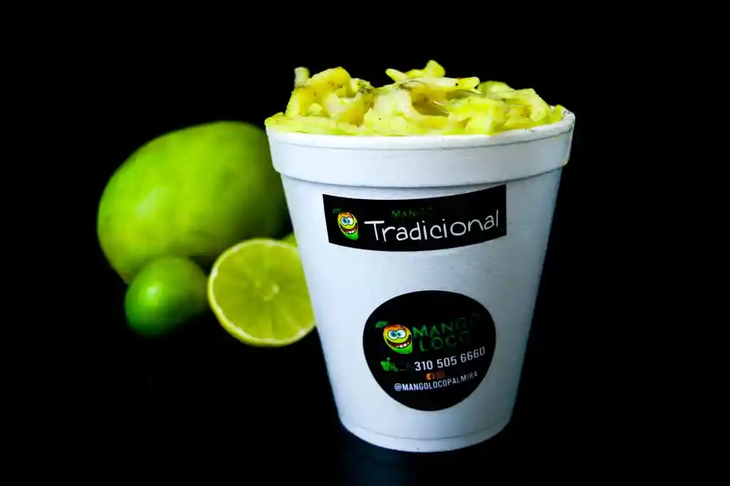Mango en tiras con Sal, limón, pimienta, canela y lechera