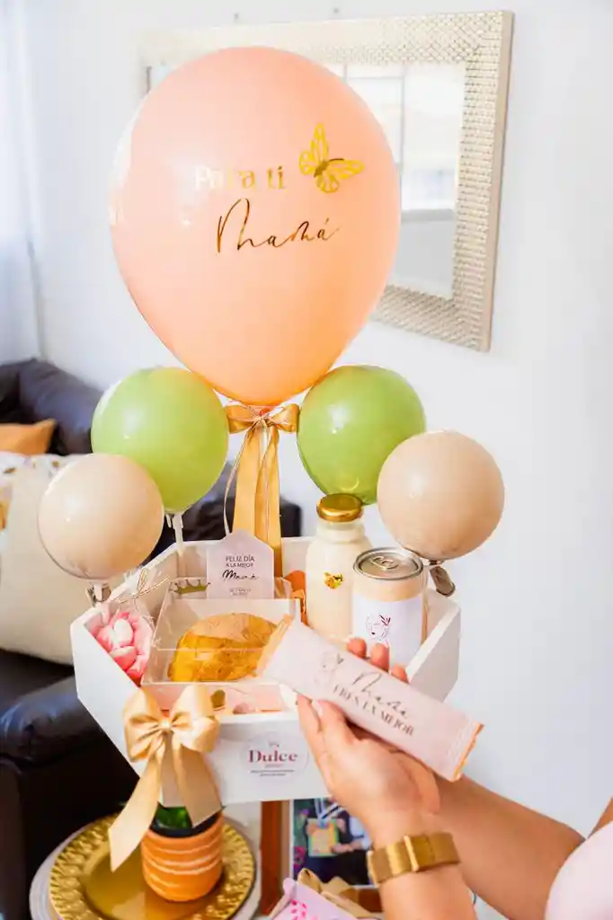 Hermoso detalle para mamá con Pasteles hojaldrados de pollo, Avena. Mix de cábano y queso, Cerveza BBC Rosé en lata, Chocolatina mas empaque, Gomas y masmelos. Bandeja de madera con decoración, Cubiertos ecológicos, Tarjeta feliz día.
