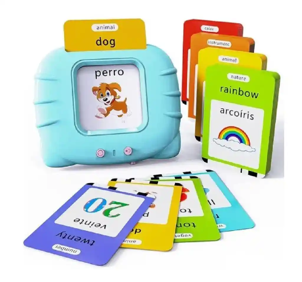 ¡Aprende INGLES jugando! Más de 112 TARJETAS en inglés y español. Nuestras tarjetas interactivas con sonido enseñan inglés y español de forma divertida. harán que el aprendizaje sea una aventura. Las tarjetas didácticas con sonido son la forma más divertida y efectiva de enseñar inglés y español a los niños.🎶🎵 Con ilustraciones coloridas y pronunciación nativa, los pequeños aprenderán vocabulario nuevo y mejorarán su pronunciación de manera natural. Más que tarjetas, una experiencia de aprendizaje!✨ Simplemente inserta la tarjeta en la ranura del lector, y el lector leerá las palabras y hará un sonido simulado imitando al animal o el objeto automáticamente. La herramienta perfecta para padres y educadores👪 ¡Despierta al bilingüe que hay en tu hijo! Comparte con tu pequeño momentos inolvidables mientras le enseñas el idioma MAS HABLADO EN EL MUNDO! ¿Por qué elegir nuestras tarjetas?🛍️ Aprendizaje inmersivo: Sumérgete en dos idiomas de forma natural y divertida. Desarrollo integral: Mejora la pronunciación, el vocabulario y la creatividad. Calidad superior: Sonido nítido, ilustraciones vibrantes y materiales duraderos. Perfecto para todas las edades: Ideal para niños desde los 3 años. Vocabulario amplio: Más de 112 palabras en inglés y español. ¡No esperes más para darle a tu hijo la mejor educación!