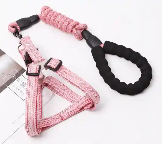 Traílla Con Arnés Mango De Goma M ROSADO para perros