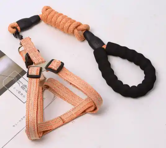 Traílla Con Arnés Mango De Goma S NARANJA para perros