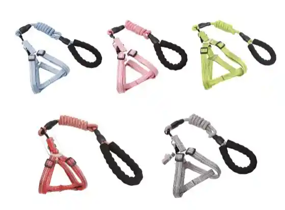 Traílla o correa con Arnés para pasear cómodamente a tu perro. Con mango en goma, lazo resistente y herrajes metálicos. Muy útil para perros de todos los tamaños. Para que salgas tranquilamente a dar grandes paseos con tu perro y exista confort y seguridad al mismo tiempo.