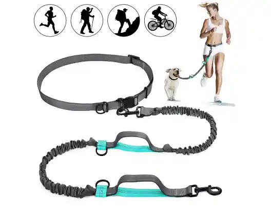 Traílla Manos libres Elástica para Correr con tu Mascota Ideal para salir a hacer deporte o salir a caminar junto con tu mascota y tener tus manos libres Especificaciones Cintura ajustable 70 cm a 120 cm Material de la correa Nylon Correa Elástica lo que te permite mejor movilidad para ti y tu mascota Largo de la correa 160 cm a 260 cm elástica Para mascotas de razas de hasta 35 kg