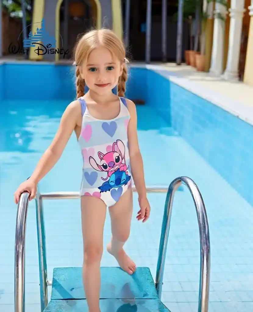 Traje de baño de una pieza para niñas con estampado de dibujos animados de Stitch, autorizado por Disney. Diseño asimétrico hueco, tejido elástico y transpirable, ideal para la playa, la piscina y los deportes acuáticos. Regalo de vacaciones en Hawái, traje de baño de verano con tejido elástico. Adecuado para una niña de 104 - 116 Cm de altura y 62 Cm de pecho. Detalles del producto. Material: Poliéster Composición: 100% Poliéster Detalles: Asimétrico Estampado: Caricaturas Tela: Elasticidad ligera Instrucciones de cuidado: Lavar a mano, no lavar en seco Estilo: Adorable Tipo: Una pieza Grupo de edad aplicable: 3 años o mayores Tipo de corte: Regular Método de tejido: Tela tejida Público objetivo: Niña