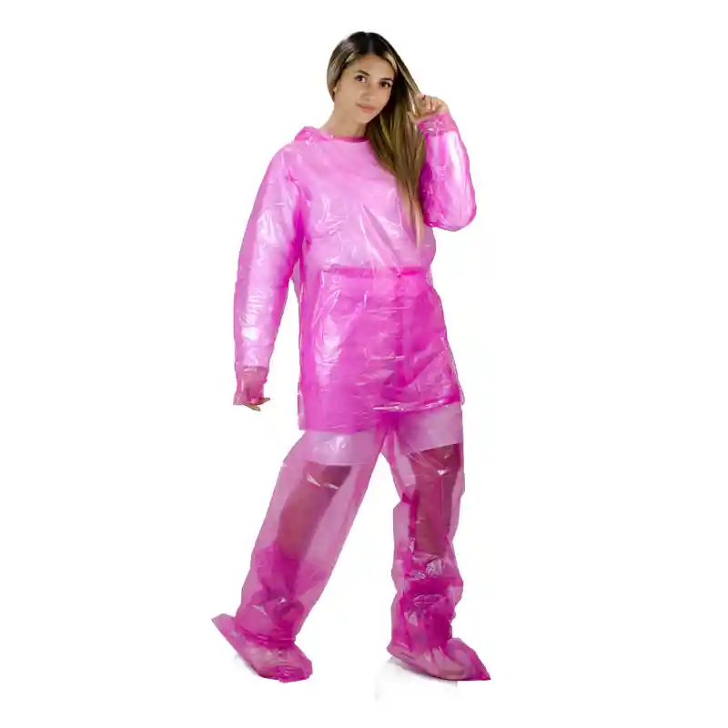 Traje Impermeable para motociclista fabricado en polietileno de baja densidad. Material 100% reciclable. Incluye Chaqueta, Pantalón y Botas.