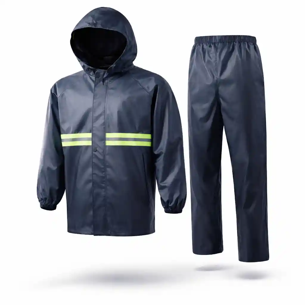 Traje Impermeable para Motociclista - Protección Total Contra la Lluvia Incluye: - 1 chaqueta impermeable con capucha - 1 pantalón impermeable. Uso: Motocicleta / Lluvia / Trabajo / Domicilios Material: Impermeable de alta resistencia Color: Azul oscuro Talla Única, cómodo, pensado para usar sobre la ropa Medidas: - Chaqueta: Ancho: 63.5 cm - Alto: 84.5 cm - Manga: 67 cm - Hombro: 53 cm - Pantalón: Largo: 100 cm - Ancho cadera: 54 cm - Ancho Bota: 23.5 cm Características principales: - 100% Impermeable: Fabricado en material resistente al agua que evita filtraciones, manteniéndote seco durante todo el trayecto. - Alta Visibilidad y Seguridad: Cuenta con bandas reflectivas en la chaqueta que mejoran la visibilidad nocturna y bajo lluvia, aumentando tu seguridad en la vía. - Diseño Funcional y Cómodo: Incluye chaqueta con capucha ajustable y pantalón con cintura elástica, permitiendo libertad de movimiento y ajuste cómodo sobre la ropa. - Resistente y Duradero: Costuras reforzadas y material resistente pensado para uso frecuente en motocicleta. - Fácil de Poner y Transportar: Ligero, práctico y rápido de usar. Ideal para llevar siempre contigo. Ideal para motociclistas, repartidores, mensajeros y cualquier persona que necesite protección confiable contra la lluvia sin sacrificar comodidad ni seguridad. Protección, visibilidad y comodidad en un solo traje.