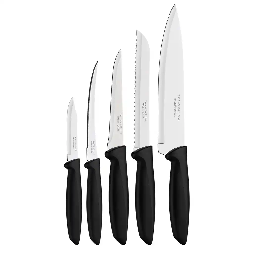 Láminas de acero inoxidable.Mangos de polipropileno.PIEZAS DEL SET1 Cuchillo para legumbres/frutas 31 Cuchillo para tomates 51 Cuchillo para deshuesar 51 Cuchillo para pan 71 Cuchillo chef 8Recomendaciones de uso: Antes del primer uso, lave bien la pieza y séquela.Producto cortante y que perfora, tenga cuidado al manejarlo y manténgalo fuera del alcance de los niños.Para una mayor durabilidad del producto, se recomienda secarlo bien antes de guardarlo, incluso cuando se laven en lavavajillas.