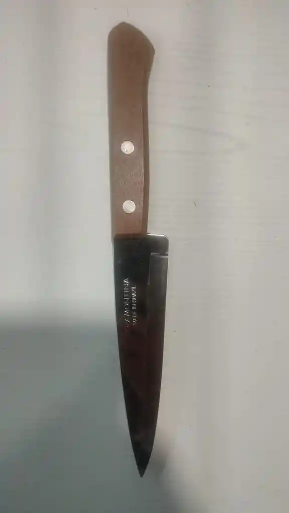 Cuchillo en acero con cabo de madera. Medidas Largo 35,5 cm, Ancho 4,5 cm