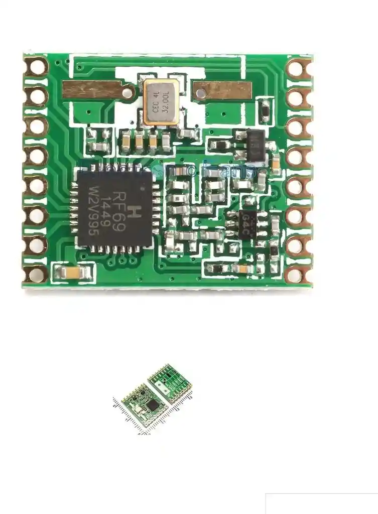 RFM69 es un modulo de transceptor inalambrico de alto rendimiento 13dBm 433 MHz de baja potencia. El circuito central utiliza un chip RF con RF transceptor. Tiene un tamaño pequeño, alta potencia, alta sensibilidad, distancia de transmision y comunicaciones de alta velocidad. RFM69 proporciona una interfaz SPI, implementada por la MCU para configurar varios parametros de RF y otras funciones a traves del software. Los modulos de la serie RFM69 se pueden utilizar ampliamente en diversos campos de transmision inalambrica de datos, es ideal para el diseño de productos de transmision de datos inalambricos. El modulo de comunicacion inalambrica de la serie RFM69 esta diseñado para trabajar en la aplicacion gratuita global de la banda ISM de 433 MHz diseñada para un modulo de comunicaciones inalambricas inalambricas de baja potencia y alto ancho de banda. Los modulos tienen un bajo costo, tamaño pequeño, estabilidad, consistencia del producto y buenas caracteristicas, la tasa espacial mas alta de hasta 300 Kbps, puede ser ampliamente utilizada en la vida diaria y las actividades de la ocasion requieren una conexion inalambrica tambien se puede utilizar para el control industrial , control de acceso, asistencia, vigilancia y seguridad. Modulo de comunicacion inalambrica serie RFM69 basado en si la banda MCU, si elevar el amplificador de potencia, interfaces de datos y metodos de empaquetado se dividen en una variedad de modelos para elegir, varios modelos dentro de la misma serie de modulos pueden comunicarse entre si, todos modelos de diseño avanzado del producto, los indicadores tecnicos excelentes cumplen con los parametros estandar de FCC / CE necesarios para cumplir con los requisitos de certificacion del cliente. RFM69 es tipo con MCU, menos potencia de transmision 13dBm modulo de comunicacion inalambrica. Frecuencia de funcionamiento 433MHZ Modulacion FSK / OOK Transmitir potencia 13dBm Sensibilidad del receptor -120dBm (1.2kb / s en ook) Velocidad de transmision 300 Kbps Corriente de emision 45mA 13dBm Reciba 16mA actual Corriente de reserva <0.1uA Interfaz SPI de interfaz de datos Comunicacion de 0-800 metros (velocidad de 1.2kb / s, distancia de visualizacion) Impedancia de antena 50O Temperatura de funcionamiento -40-85 C Fuente de alimentacion DC 1.8V ~ 3.6V Tamaño 20x16.mm LA COMPRA INCUYE: 1X TRANSCEPTOR FSK RFM69HW 433MHz