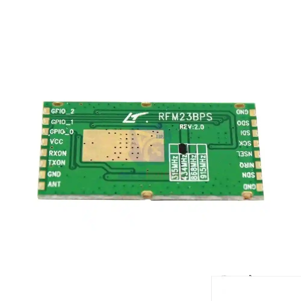 Los RFM23BP de HopeRF son modulos de transceptores inalambricos ISM 433MHZ altamente integrados y de bajo costo. La baja sensibilidad de recepcion ( 120dBm) junto con la potencia de salida de + 30dBm lider en la industria asegura un rango extendido y un rendimiento de enlace mejorado. La diversidad de antena incorporada y el soporte para salto de frecuencia se pueden utilizar para ampliar aun mas el alcance y mejorar el rendimiento. Las caracteristicas adicionales del sistema, como un temporizador de activacion automatica, un detector de bateria baja, FIFO TX / RX de 64 bytes, manejo automatico de paquetes y deteccion de preambulos reducen el consumo general de corriente y permiten el uso de MCU del sistema de menor costo. Un sensor de temperatura integrado, ADC de uso general, restablecimiento de encendido (POR) y GPIO reducen aun mas el costo y el tamaño general del sistema. El archivo de recepcion digital RFM23BP presenta un modem basado en ADC y DSP de alto rendimiento que realiza la demodulacion, el filtrado y el manejo de paquetes para una mayor flexibilidad y rendimiento. La modulacion de transmision digital directa y el aumento de potencia de PA automatico aseguran una modulacion de transmision precisa y una dispersion espectral reducida que garantiza el cumplimiento de las regulaciones globales, incluidas FCC, ETSI. Se proporciona una calculadora facil de usar para configurar rapidamente la configuracion de la radio, simplificando el diseño del sistema del cliente y reduciendo el tiempo de comercializacion. Rango de frecuencia: bandas ISM 433MHz Sensibilidad = 120 dBm Rango de potencia de salida: +30 dBm Max (RFM23BP) Bajo consumo de energia: 25 mA de recepcion, 550 mA a +30 dBm de transmision Velocidad de datos = 0.123 a 256 kbps Modulacion FSK, GFSK y OOK Fuente de alimentacion = 3.3 a 6 V Modo de apagado de ultra baja potencia RSSI digital Temporizador de despertador Calibracion automatica de frecuencia (AFC) Encendido-reinicio (POR) Diversidad de antena y control de interruptor TR Controlador de paquetes configurable Detector de preambulos FIFOs de TX y RX de 64 bytes Detector de bateria baja Sensor de temperatura y ADC de 8 bits Reguladores de voltaje integrados. Capacidad de salto de frecuencia Ajuste de cristal en chip Bajo costo Control remoto Seguridad para el hogar y alarma Telemetria Registro de datos personales. Control de juguete Control de la presion de los neumaticos Perifericos inalambricos para PC Lectura remota del medidor Entrada remota sin llave Automatizacion del hogar Control industrial Redes de sensores Monitores de salud Lectores de etiquetas LA COMPRA INCLUYE: 1X TRANSCEPTOR RFM23BP 434Mhz 1000mW