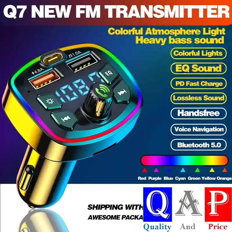 Transmisor Bluetooth Y Cargador USB Dual Q7 Para Vehículos, Asistente De Voz, Manos Libres