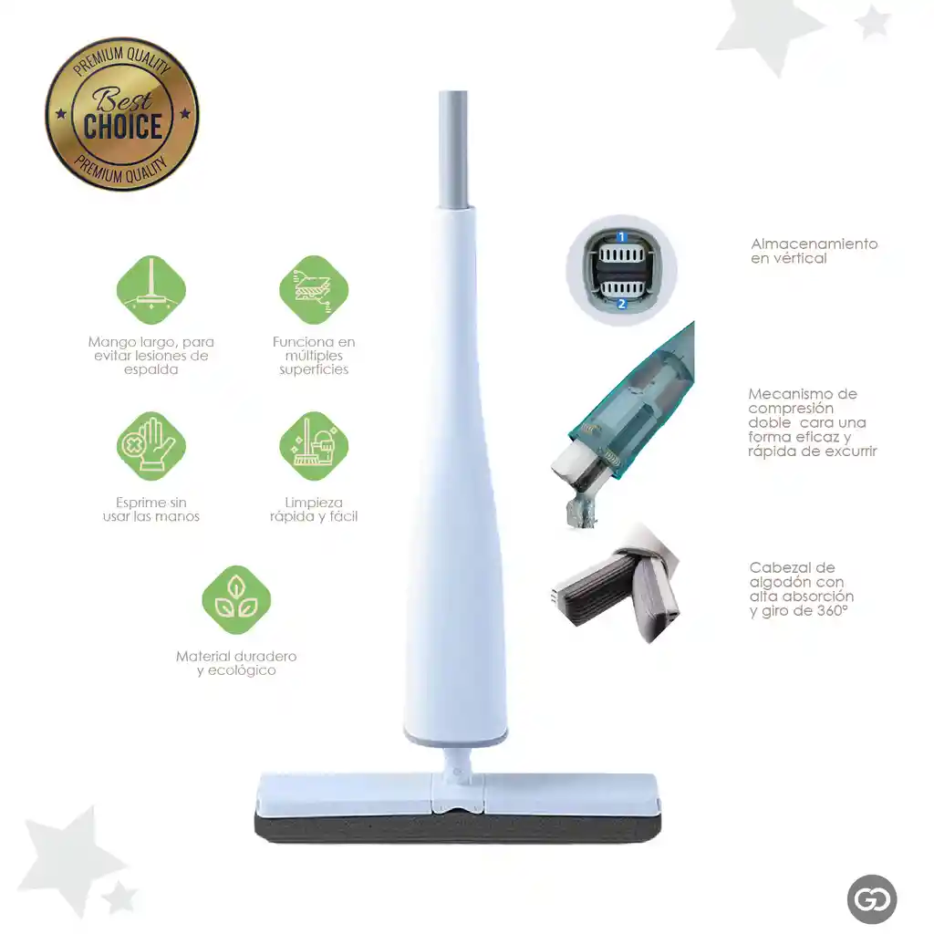 Ficha técnica: Tipo: Trapero Auto Exprimible Plegable Características: Mango largo, exprimido automático sin uso de manos, cabezal de algodón suave de alta absorción giratorio 360° Mecanismo de compresión para exprimir y ahorrar espacio Material duradero Dimensiones: 132 cm x 32 cm x 5 cm Almacenamiento vertical para ocupar menos espacio Ideal para: Limpiar superficies con eficacia y comodidad