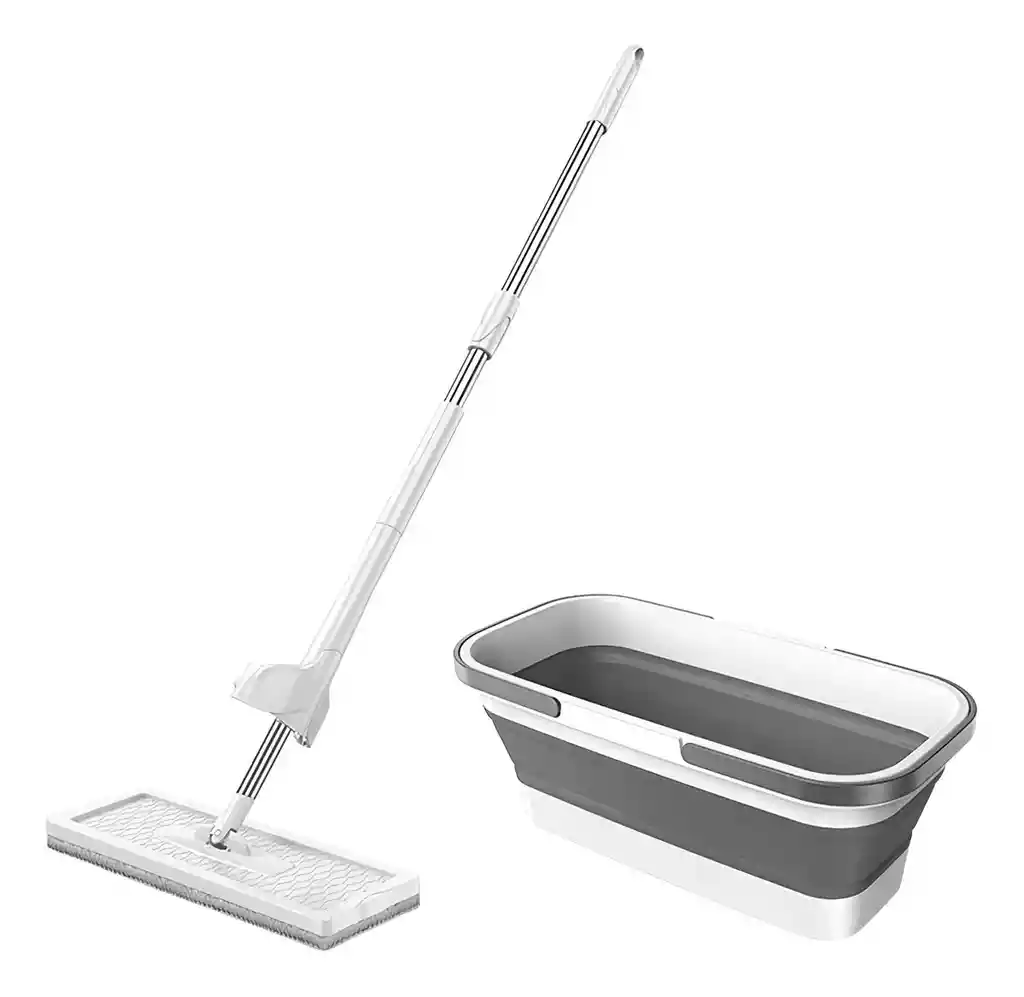El Trapero Mopa de Microfibra con Balde Plegable es una solución versátil y eficiente para la limpieza del hogar, ideal para pisos laminados y ventanas. Su cabezal giratorio de 360° permite alcanzar rincones difíciles, mientras que su mopa absorbente e intercambiable garantiza una limpieza efectiva al eliminar suciedad y derrames. Fabricado con materiales de alta calidad como PP, silicona, acero inoxidable y fibra de algodón, ofrece resistencia y durabilidad. Su balde plegable facilita el almacenamiento y puede usarse como fregadero improvisado, mientras que su sistema de escurrido sin contacto mantiene las manos secas, asegurando una experiencia de limpieza más cómoda y práctica. Ficha Técnica: * Trapero de 45 cm * Balde plegable de 56 cm * Mecanismo de escurrido fácil * Autoescurrible * Material del cubo: PP + silicona * Material de la fregona: PP + acero inoxidable + fibra de algodón * Material del mango: acero inoxidable * Uso húmedo y seco * Limpieza de techos, paredes, ventanas y puertas ** _Para defectos de fábrica o retractos: \**_Por favor revise el producto apenas lo reciba y antes de usarlo. No aplican ley de retracto o defectos de fábrica luego de usar el producto. Se manejan máximo 5 días para reportar defectos de fábrica (por ejemplo, producto funciona mal, piezas faltantes, rotas, etc). Para hacer efectiva la devolución el producto debe devolverse con el empaque original, el cual debe estar en buen estado, incluir todos los documentos y las partes completas y sin daños.