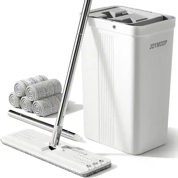 TRAPERO MICROFIBRA CON ESCURRIDOR Herramienta de limpieza del hogar: trapeador y cubo JOYMOOP con juego de escurridor, cubo de trapeador de 2 cubos, lavar y secar, raspar la suciedad en la cámara de lavado, exprimir el agua en la cámara seca, sin limpiar las manos. Nota: mopa mopa para evitar problemas de inserción dura [Juego de cubo para trapeador] Juego de cubos de fregona plana. Un trapeador autolimpiante reduce su tiempo y mano de obra, lo que permite que el balde maneje más de lo que puede por su cuenta. El trapeador se simplifica entre el trapeador y el cubo, manteniéndote alejado del agua sucia; todo lo que necesitas hacer es insertar y tirar de la fregona [Trapeadores para limpieza del suelo] El cabezal plano de rotación de 360° puede llegar a cualquier esquina y a esos lugares "debajo de lo que sea". El mango ajustable de acero inoxidable se puede extender de 26.5 a 60.0 pulgadas, muy adecuado para ser un trapeador húmedo y seco para paredes, limpiador de pared con mango largo Fácil almacenamiento: todas las piezas son lo suficientemente compactas como para caber sin esfuerzo dentro del cubo. Cuando no lo uses, simplemente colócalo en la esquina y nunca te preocupes por ocupar demasiado espacio. Mientras tanto, el lado del lavado tiene un volumen alrededor de 6.5l, cuerpo compacto con gran capacidad Paños de microfibra de limpieza reutilizables: aplicados a un cabezal de trapeador de 13.0 x 4.9 pulgadas. Este juego incluye 5 repuestos de almohadillas de microfibra para trapeador. La fuerte absorción de agua te permite hacer fácilmente cualquier limpieza húmeda y seca. Para mantener la facilidad de uso a largo plazo, se recomienda cambiar las recargas cada 1-2 meses según la frecuencia de uso